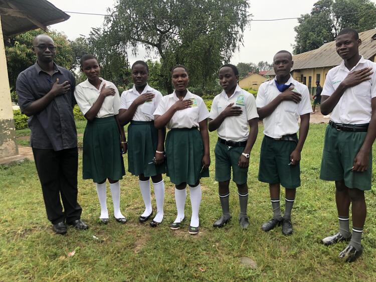 Mr. Luwagga Simon with S.4 Candidates after exams